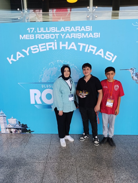 Okulumuz Bilgisayar ve Öğretim Teknolojileri öğretmeni Fatma SARI liderliğinde öğrencilerimizin geliştirmiş olduğu JUNIOR isimli Temel Seviye Çizgi İzleyen robotumuzla 17. Uluslararası MEB Robot Yarışmasına Katılım sağlandı. Yarışmada emeği geçen Bilgisayar ve Öğretim Teknolojileri öğretmeni Fatma SARI, Sosyal Bilgiler öğretmeni Doğan BABAYİĞİT, öğrencilerimiz Rıfat KOŞÇA ve Yamin HACCÜNEYD'e teşekkür ederiz.